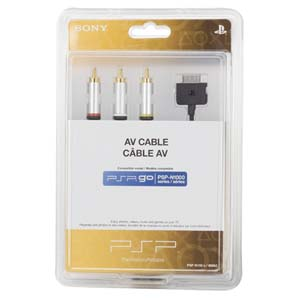Use this AV cable to take advantage of the PSP®go video-out function to enjoy all of the games, movies, videos, music and photos stored on the 16GB flash memory on a big screen! Cable length – 8.2 ft (2.5 metres) This cable requires input connector on the TV.